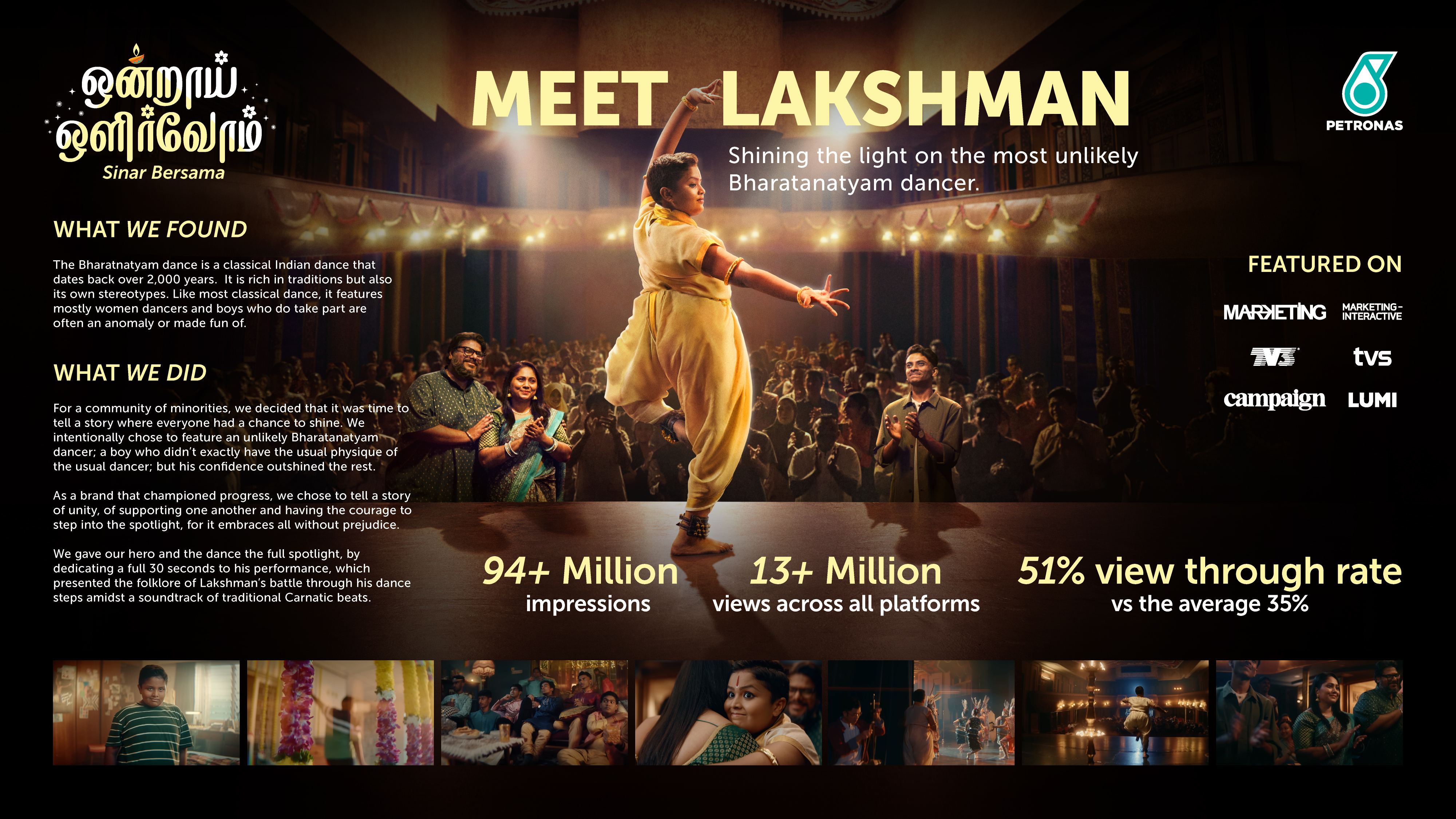 In Malaysia, Indians make up the minority of the population with 6%. As the minorities, their representation in the media is often stereotyped. PETRONAS, the largest company in Malaysia, was passionate about one thing: PROGRESS. So we wanted to feature this minority population in a way that was progressive and respectful to their culture.