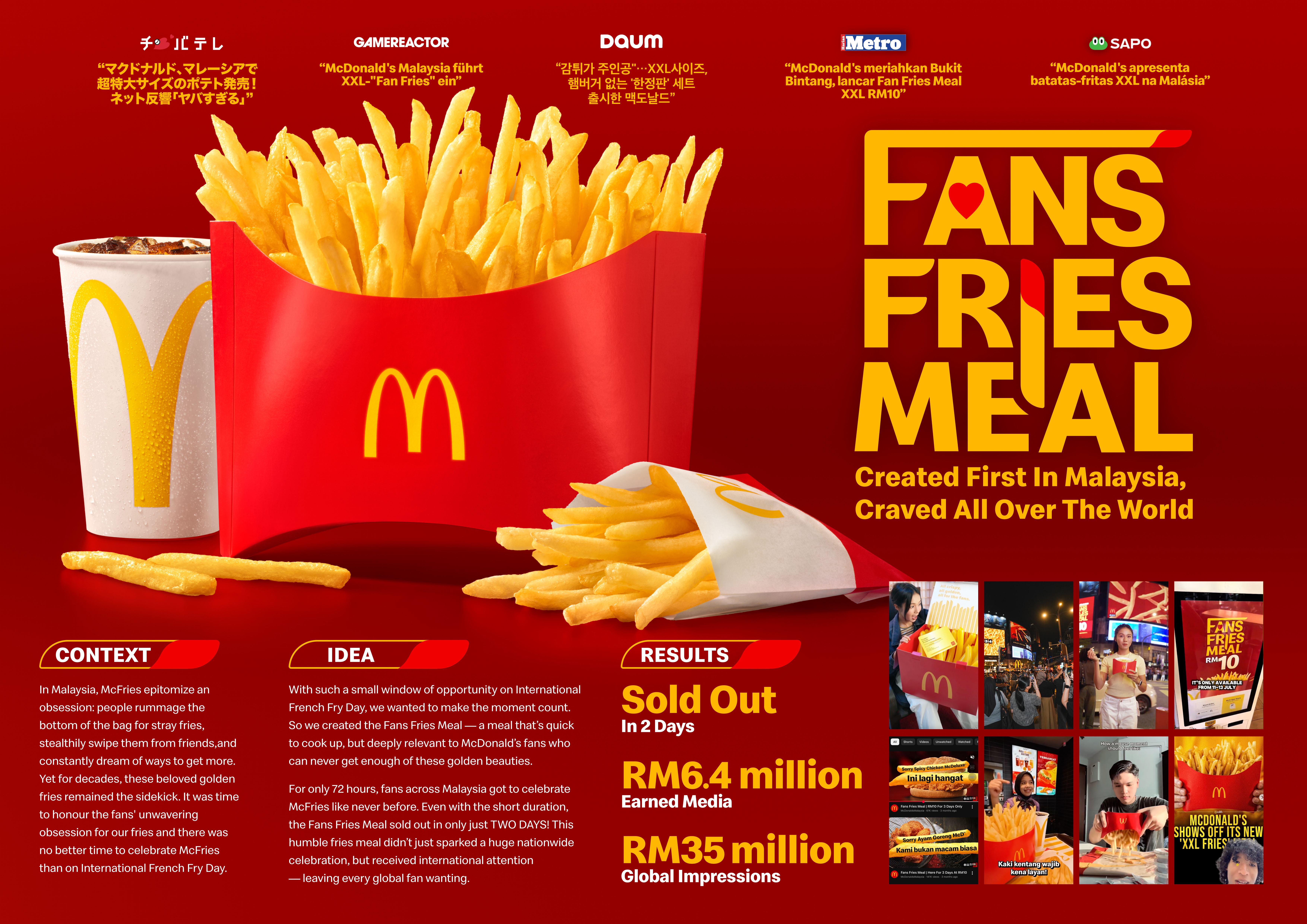 In just the first two days, all 80,000 Fans Fries Meals sold out — earning RM6.4 million in media value and over 35 million global impressions. Proof that even within a short duration, a humble fries meal can spark a moment the world remembers.