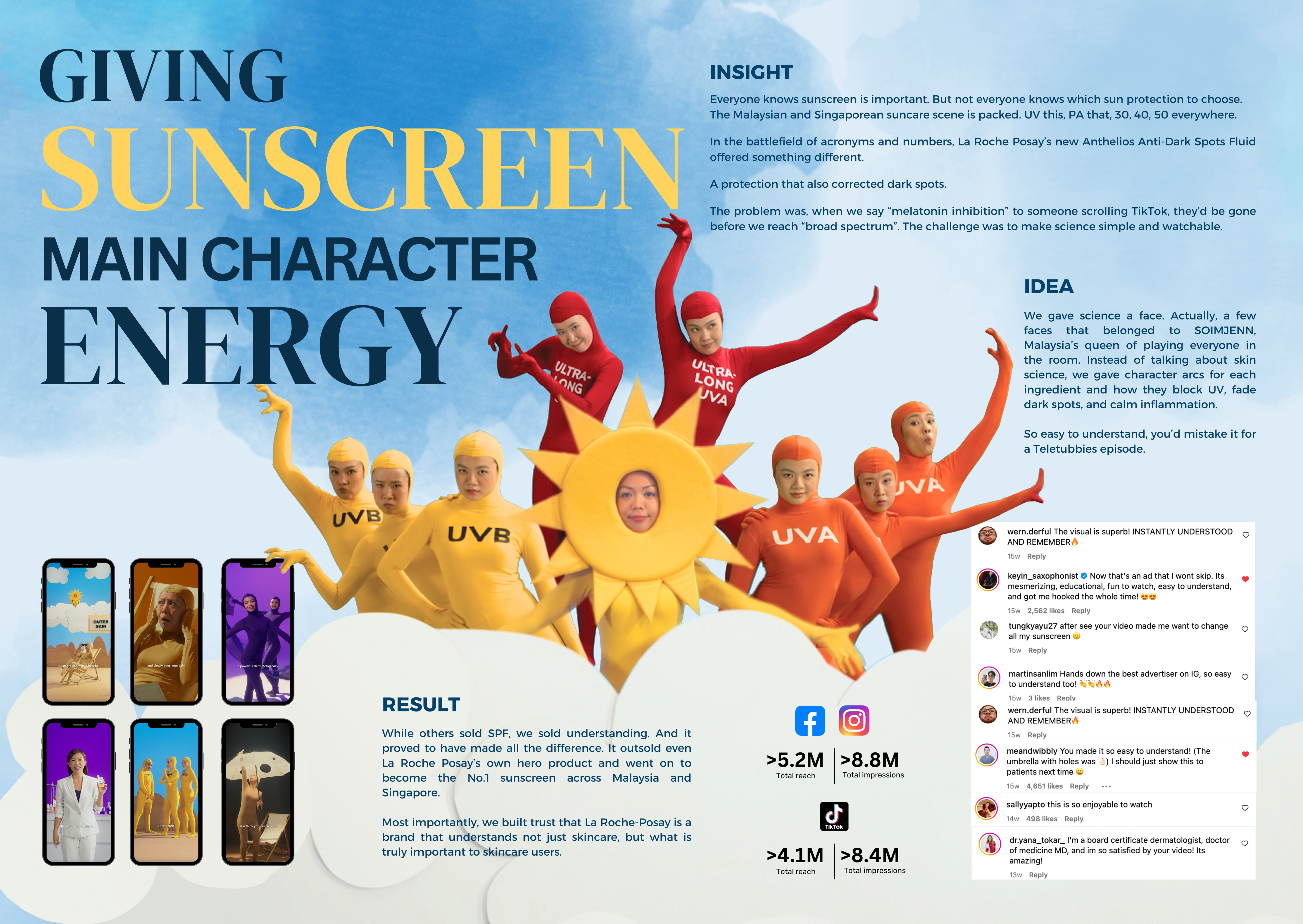 We gave science a face. Actually, a few faces that belonged to SOIMJENN, Malaysia’s queen of playing everyone in the room. Instead of talking about skin science, we gave character arcs for each ingredient and how they block UV, fade dark spots, and calm inflammation.