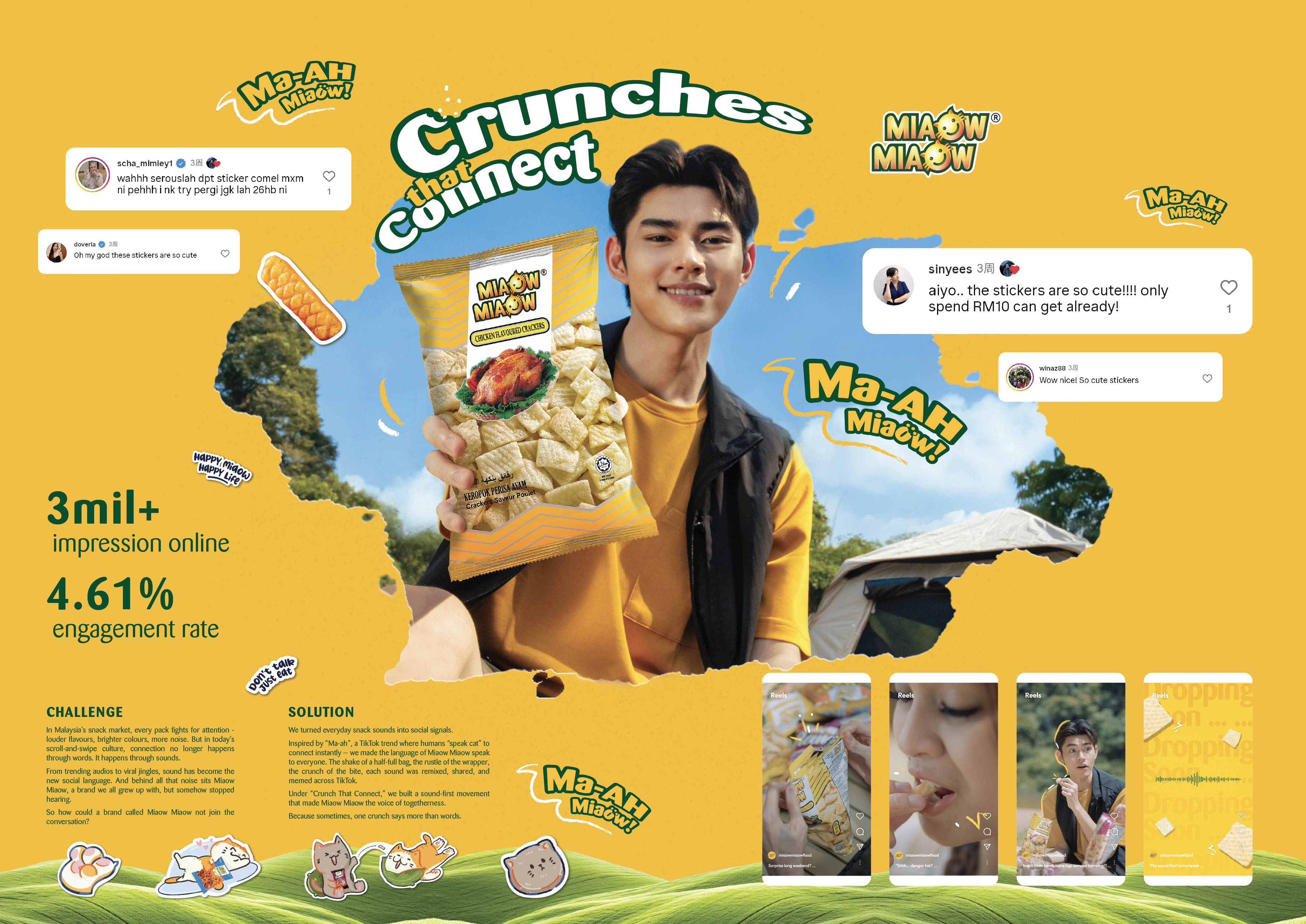 Under Crunch That Connect, we built a sound-first movement that made Miaow Miaow the voice of togetherness. Because sometimes, one crunch says more than words.