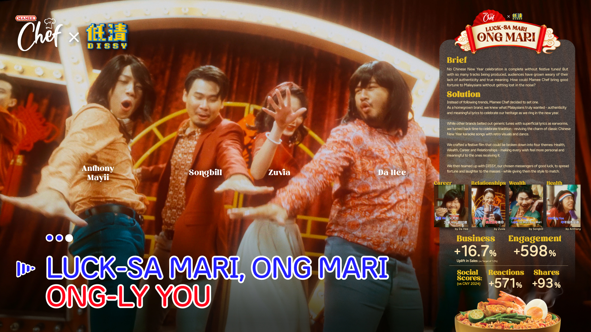 No Chinese New Year celebration is complete without festive tunes! But with so many tracks being produced, audiences have grown weary of their lack of authenticity and true meaning. How could Mamee Chef bring good fortune to Malaysians without getting lost in the noise?