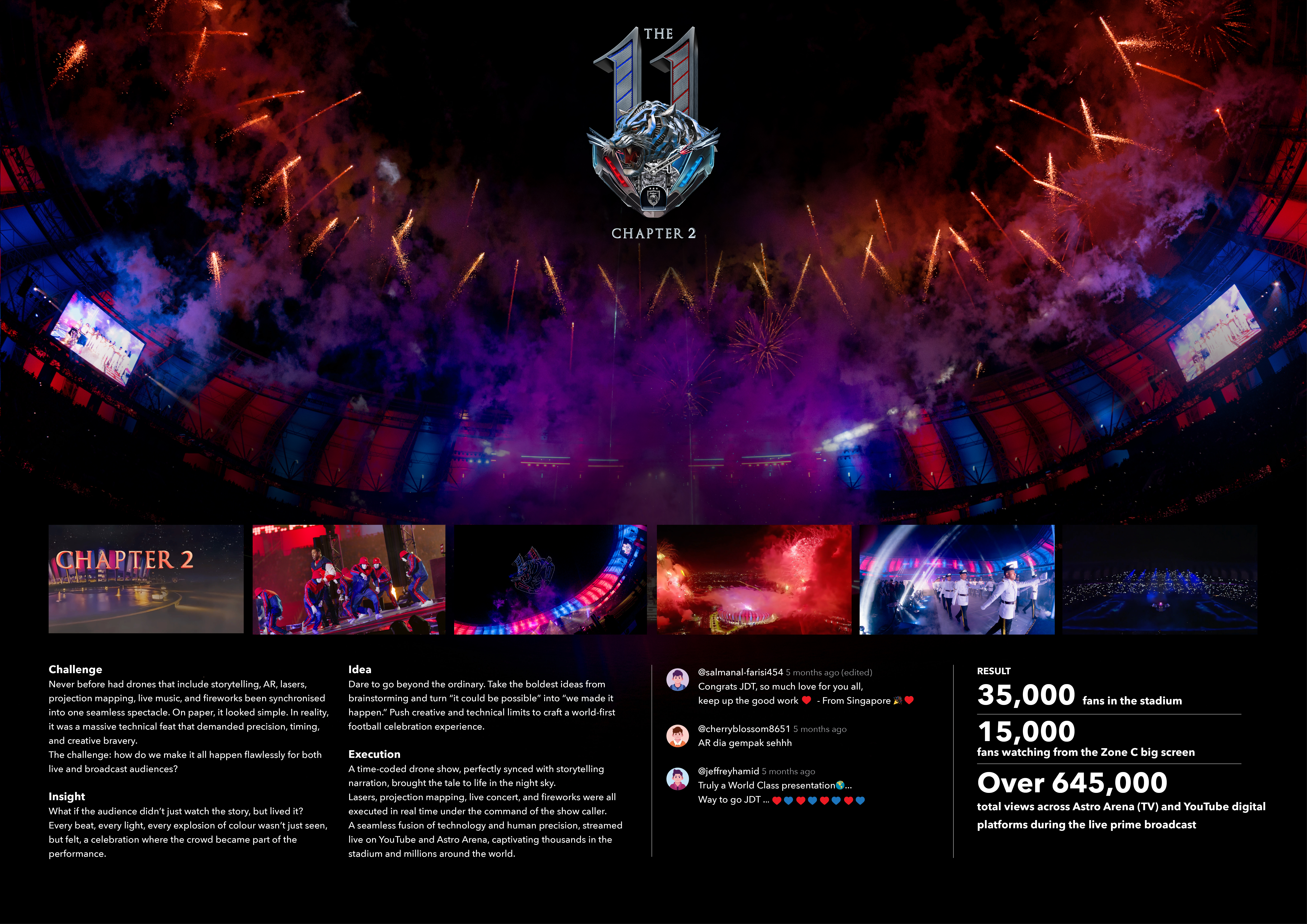 To celebrate JDT FC’s 11th consecutive league title, we aimed to create a once in a lifetime experience that connected the team, fans, and community. Beyond a football celebration, the event was designed as a live storytelling experience, blending sports, music, and multimedia to honour JDT’s legacy and inspire pride among supporters on-site and worldwide.