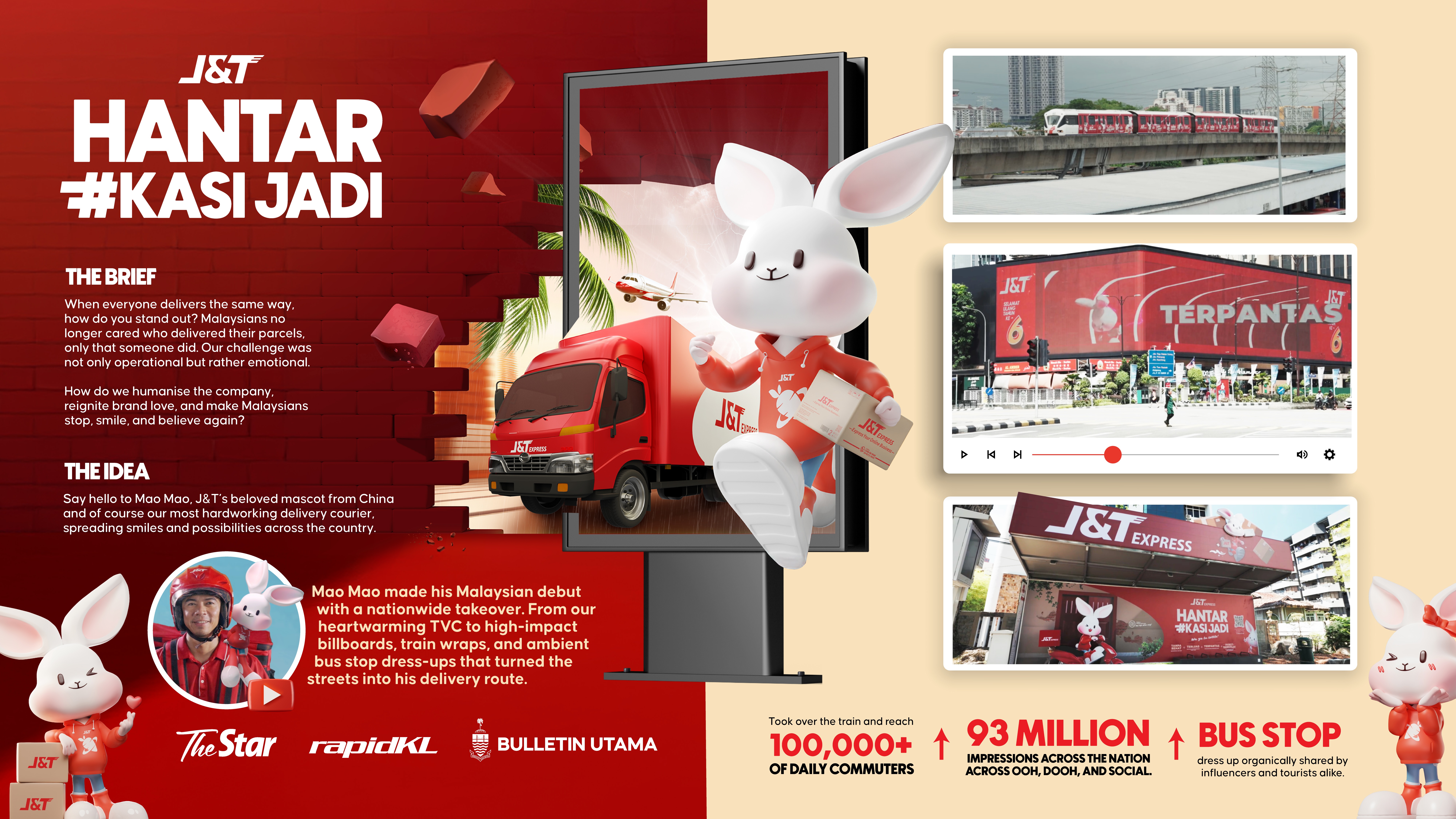 Say hello to Mao Mao, J&T’s beloved mascot from China and of course our most hardworking delivery courier, spreading smiles and possibilities across the country. During the festive Malaysia Day period we introduced him to the nation, from our screens (TVC, digital) to the streets (Billboard, Ambient).
